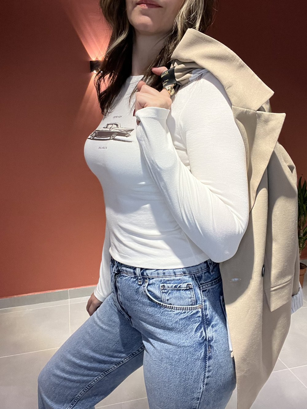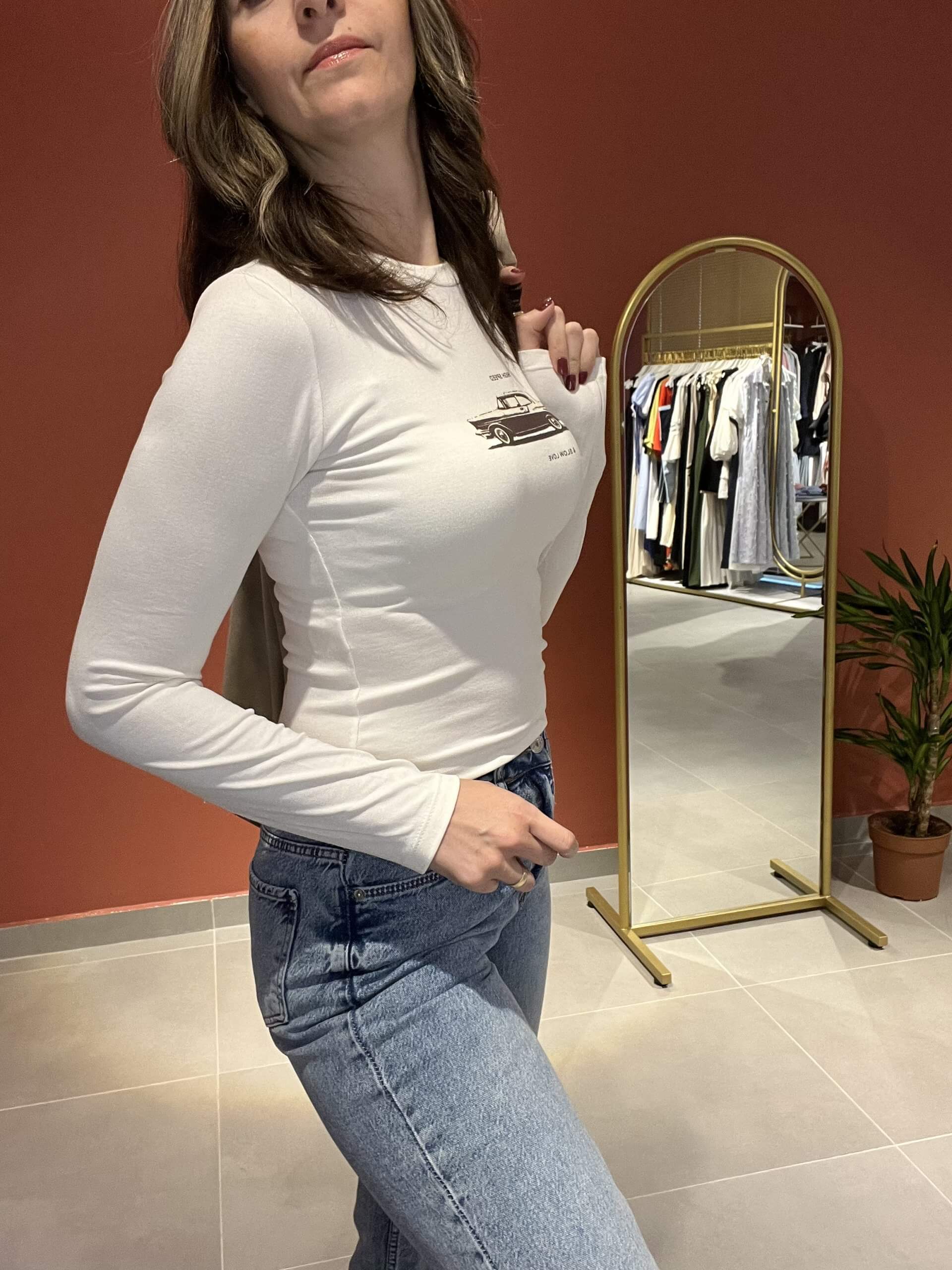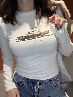 Araba baskılı basic body #krem