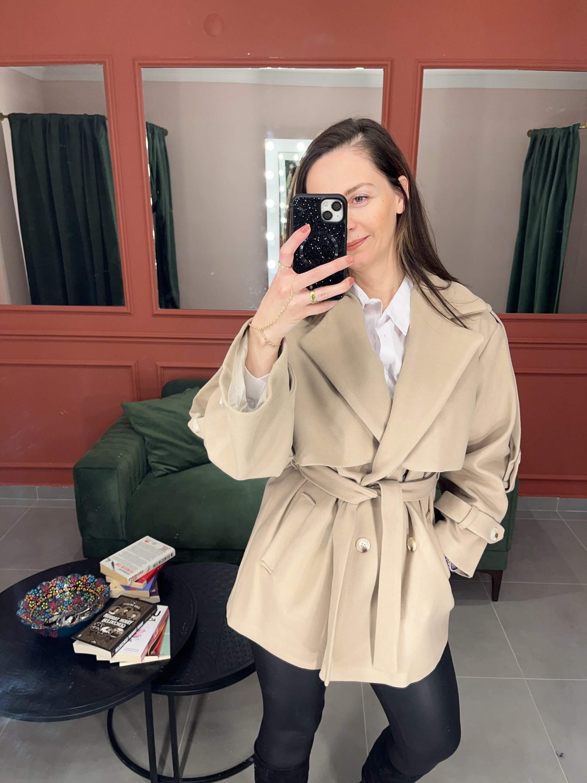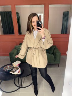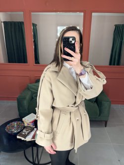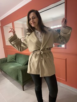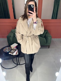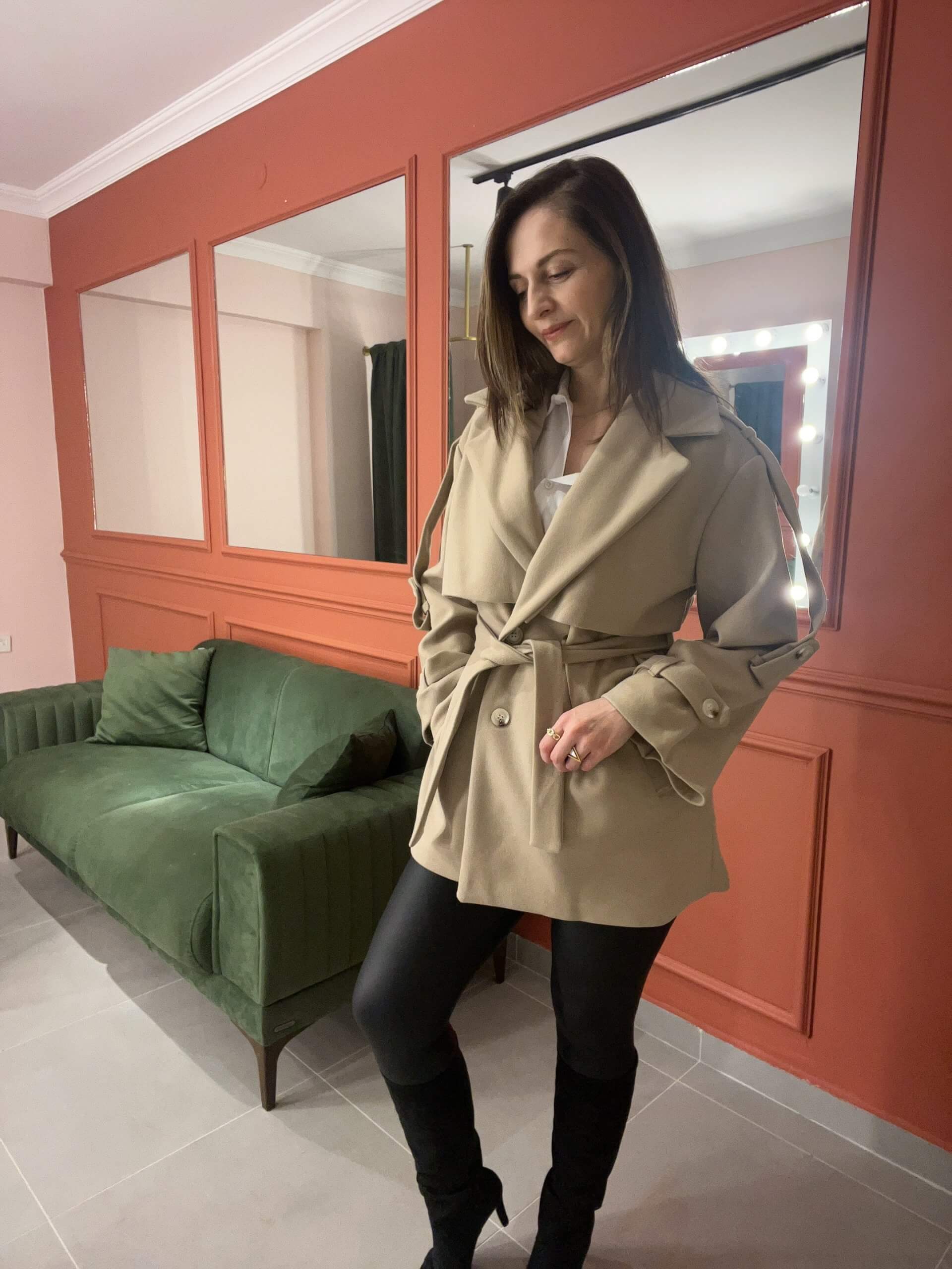 Ürün rahat kalıptır. Ara bedenler bir beden küçüğünü tercih edebilir. Düğmeli kuşaklı ve içi astarlıdır.